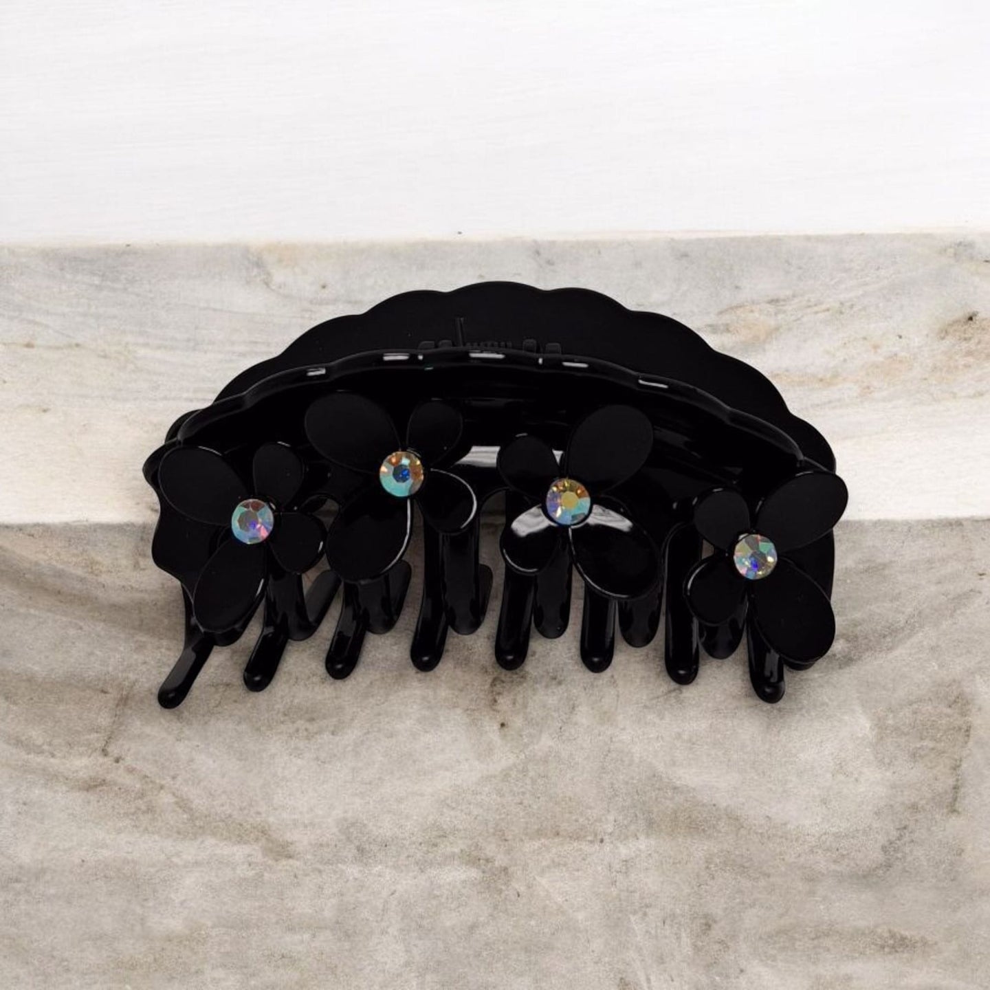 This elegant hair clip, crafted from durable plastic, features a delicate flower and an intricate imitation pearl detail. It's the perfect accessory to add a touch of romantic style to any hairstyle, whether you're dressing up for a special occasion or adding a chic accent to your everyday look.