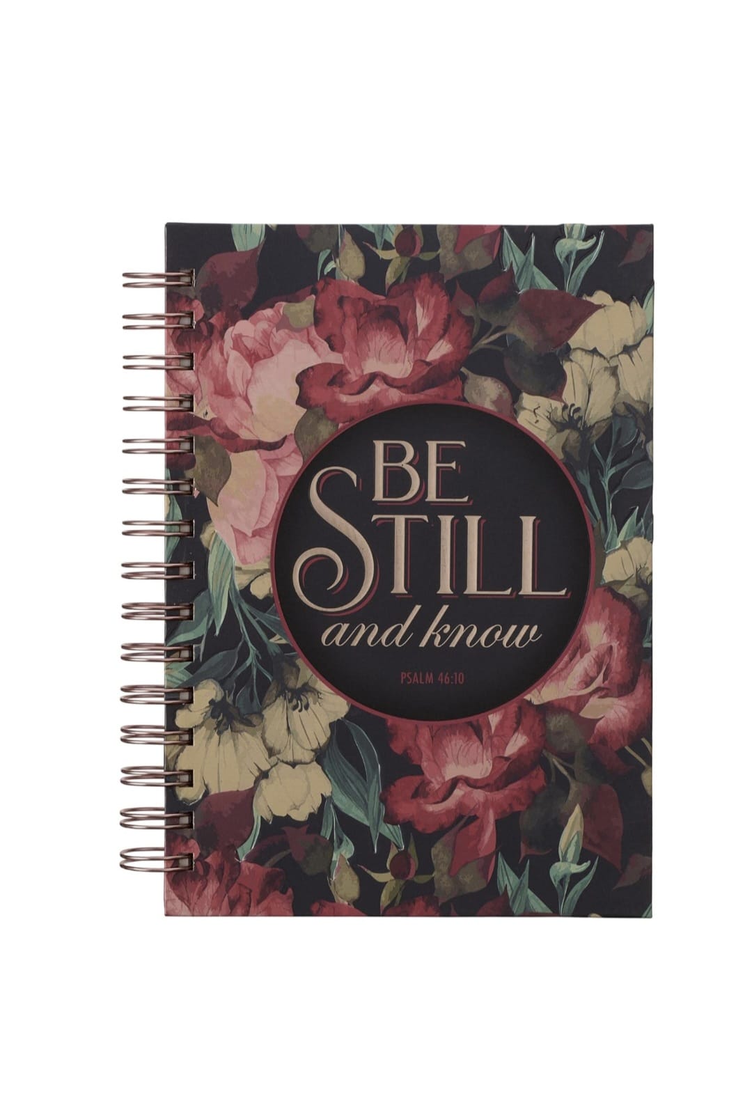 "Be Still and Know" - Diario de Espiral con Versículo Salmo 46:10 (Diseño Floral Rosa)