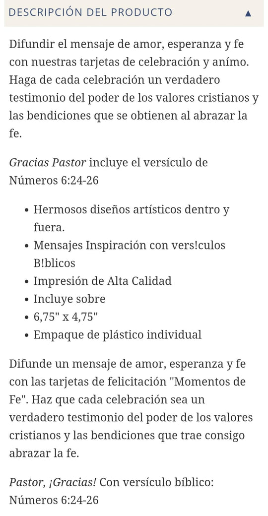 Tarjeta de Agradecimiento a Pastor "Gracias Pastor" - Con Versículo de Números 6:24-26