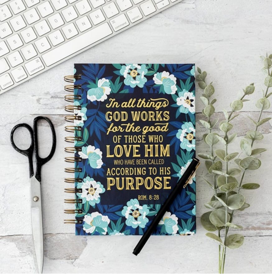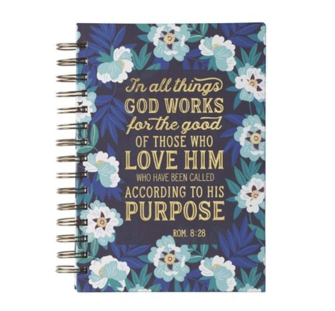 Este diario de espiral con el inspirador versículo de Romanos 8:28, "God works for the good of those who love Him," es un recordatorio constante de la promesa de Dios. Con su tamaño grande, ofrece amplio espacio para la escritura, lo que lo convierte en la herramienta perfecta para registrar oraciones, reflexiones devocionales y notas de estudio bíblico.