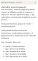Este novedoso y entretenido juego de preguntas es la herramienta perfecta para sumergirte en la Palabra de Dios y aprender sobre la Biblia de una forma dinámica. Cada tarjeta está diseñada para desafiar tu conocimiento con 2 a 3 preguntas, sus respuestas y la cita bíblica de referencia. ¡Y para hacerlo aún mejor, cada tarjeta está traducida al inglés en la parte de atrás, lo que te ayuda a practicar y aprender un nuevo idioma mientras te acercas a Dios!