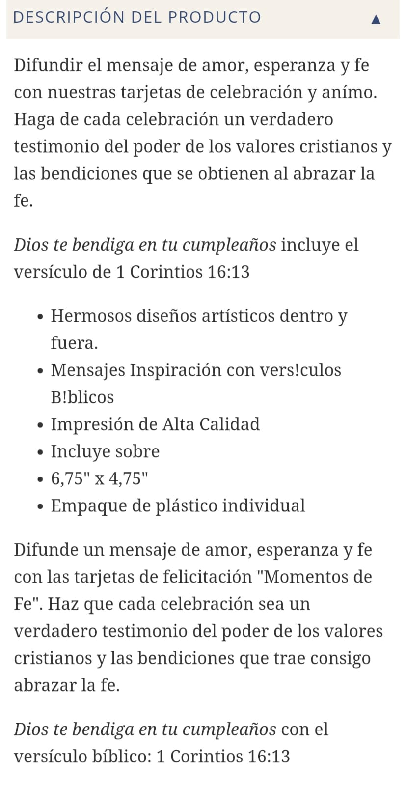 Esta tarjeta de cumpleaños es la manera perfecta de transmitir un mensaje de amor, esperanza y fe a tus seres queridos. Inspirada en el versículo de 1 Corintios 16:13, cada tarjeta es un recordatorio de que Dios bendice a quienes están firmes en la fe. Presenta hermosos diseños artísticos, mensajes inspiradores y viene con un sobre, lista para ser entregada.