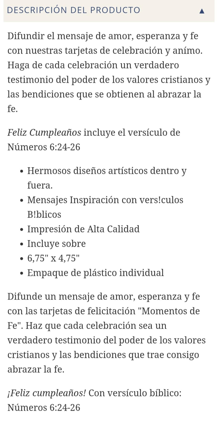Hecha con impresión de alta calidad, esta tarjeta viene en un empaque de plástico individual e incluye un sobre, lista para ser entregada. Es un regalo significativo y una forma tangible de compartir las bendiciones de la fe.