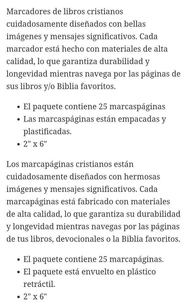 Set de 25 Marcadores de Libros Cristianos Plastificados (2"x6")