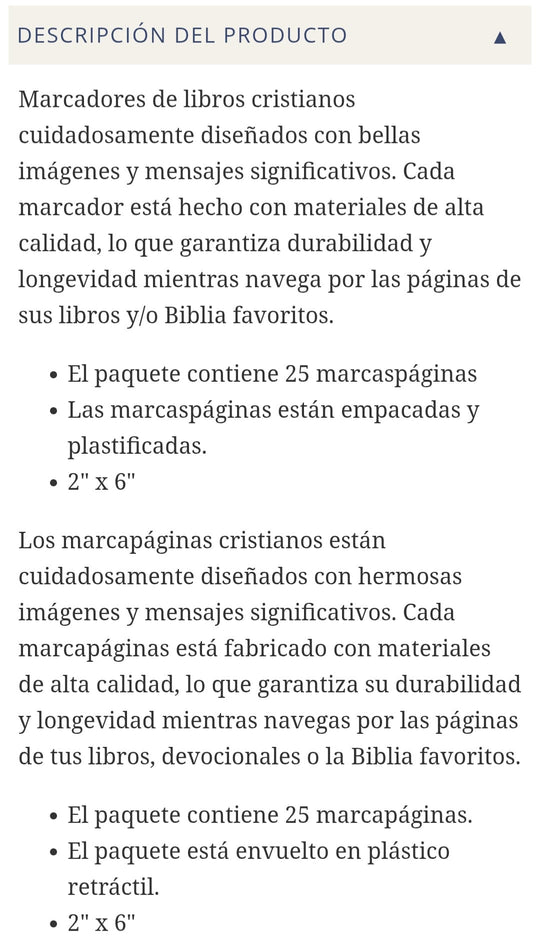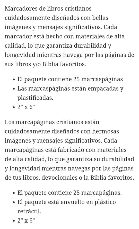 Set de 25 Marcadores de Libros Cristianos Plastificados (2"x6")