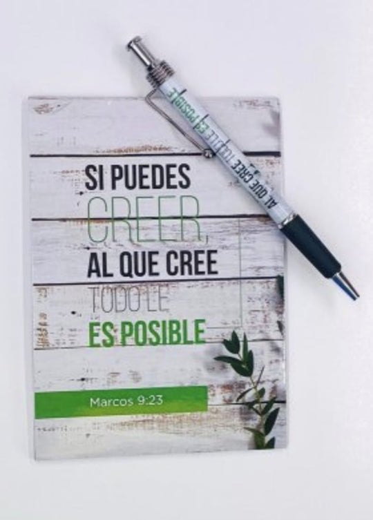 Libreta y Bolígrafo: "Todo es Posible para el que Cree" - Inspirado en Marcos 9:23