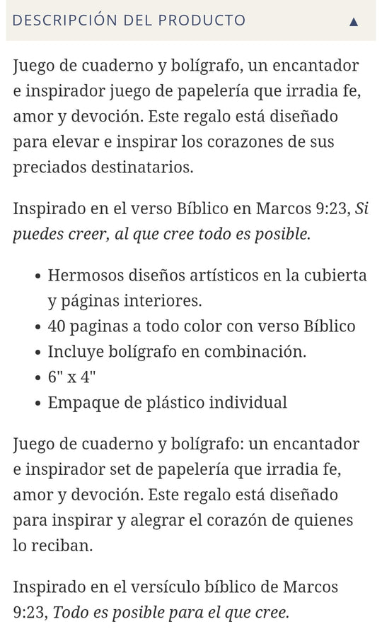 Este encantador set de cuaderno y bolígrafo es un regalo perfecto para elevar e inspirar los corazones de sus seres queridos. Inspirado en el poderoso versículo de Marcos 9:23, este set es un recordatorio de que...Regular price $3.50Regular price $3.50