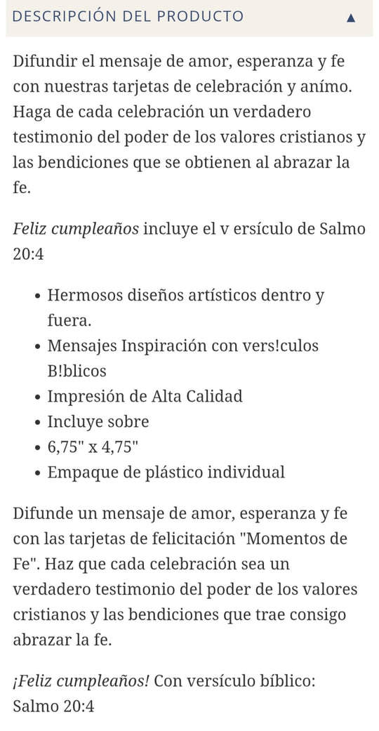 Esta tarjeta de cumpleaños es la manera perfecta de transmitir un mensaje de amor, esperanza y fe a tus seres queridos. Diseñada para celebrar un día especial, cada tarjeta es un verdadero testimonio del poder de...Regular price $1.99Regular price $1.99
