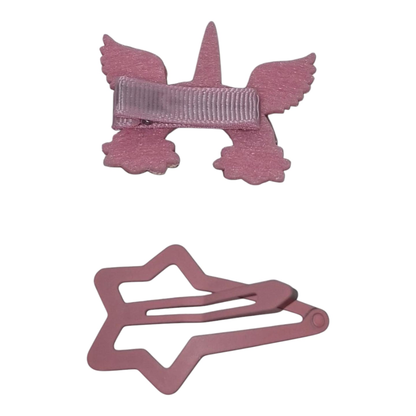 Añade un toque de magia a los peinados de las niñas con este set de clips. Incluye un encantador clip de unicornio blanco escarlata y un moderno clip metálico rosado. Son el accesorio perfecto para complementar cualquier atuendo con un estilo divertido y lleno de fantasía.