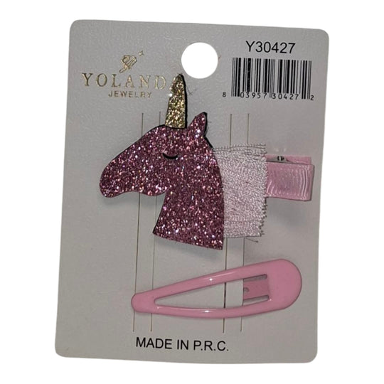 Clips de Unicornio y Metálico Rosado para Niña