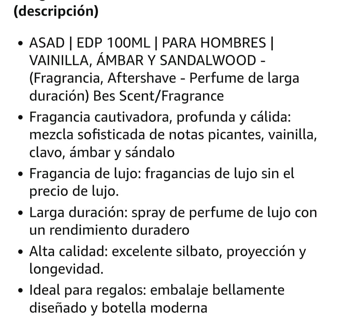 ASAD es una fragancia árabe de larga duración, diseñada para el hombre que busca un aroma distintivo y poderoso. Su nombre, que significa "león" en árabe, refleja una esencia audaz y de carácter. Este perfume premium combina notas refrescantes con una base rica y profunda de oud y almizcle.