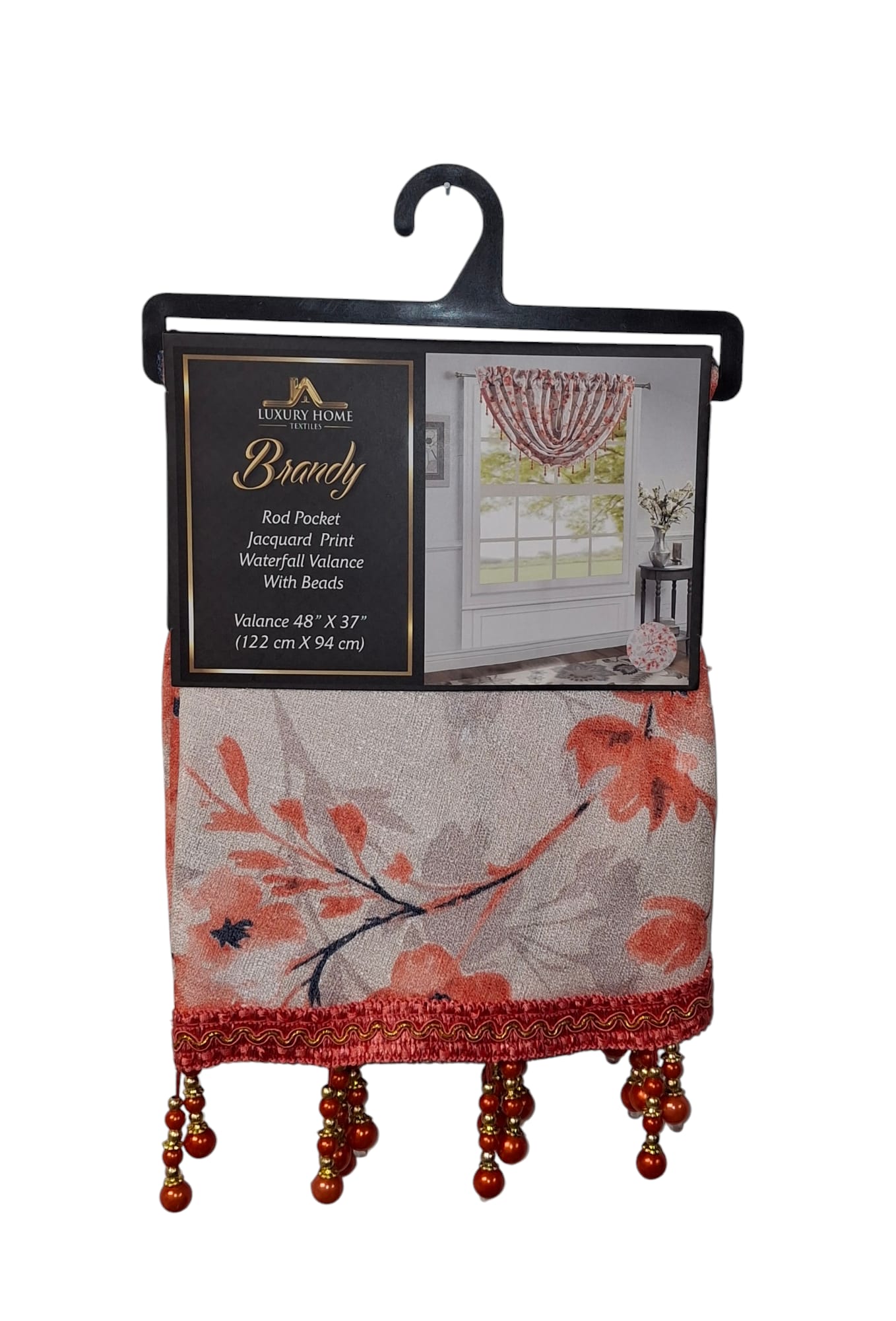 Vendor: Brandy Brandy Rod Pocket Jacquard Print Waterfall Valance with Beads. Coral Regular price $6.99