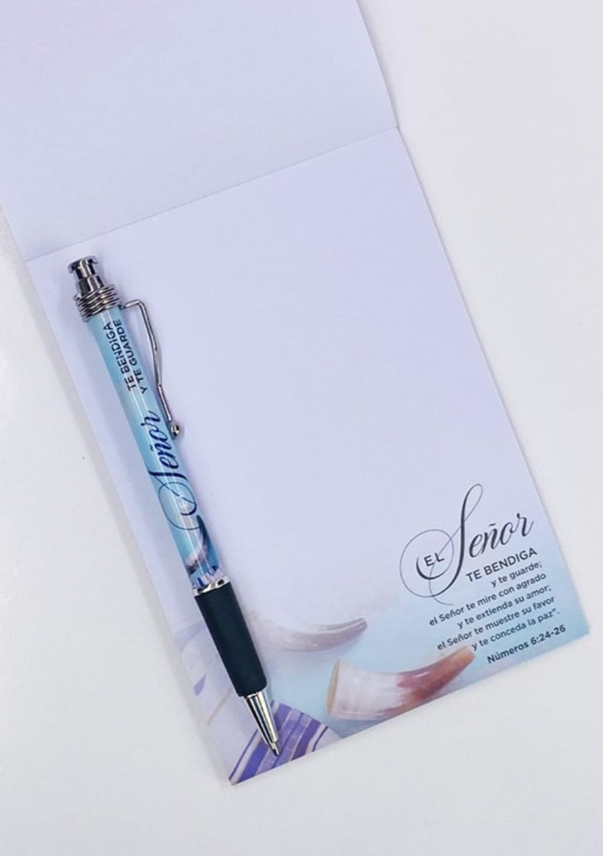 El tamaño compacto de 4"x6" es ideal para llevar a la iglesia o a tu grupo de estudio bíblico. El bolígrafo a juego complementa el diseño de la libreta, haciendo de este set un regalo significativo para cualquier creyente.