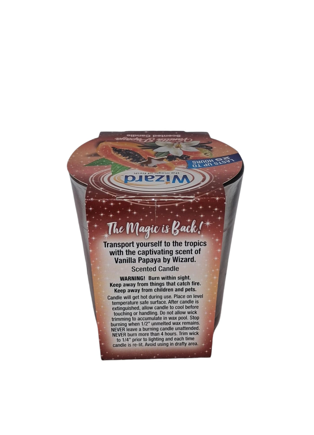 Experience the enchanting aroma of vanilla papaya with the Wizard Sientes Candle. This 3 oz candle brings a magical touch of freshness to your home, creating a warm and inviting atmosphere. Perfect for any room, this candle is a delightful addition to your home fragrance collection.